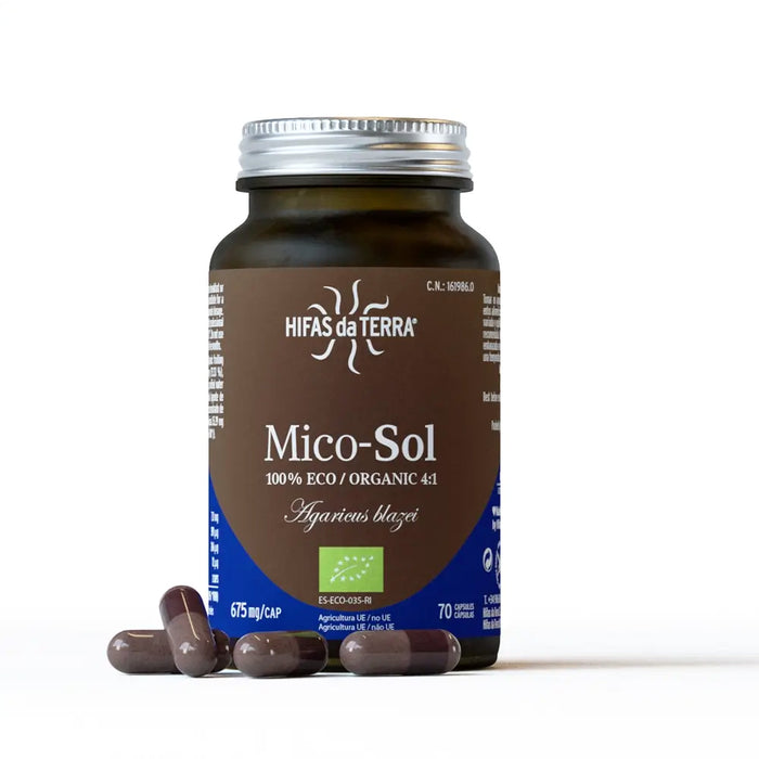 Mico-Sol è un integratore alimentare di Hifas da Terra a base di Agaricus blazei Murrill (AbM) puro, biologico e standardizzato in β-glucani, GABA, lovastatina e acidi grassi essenziali.